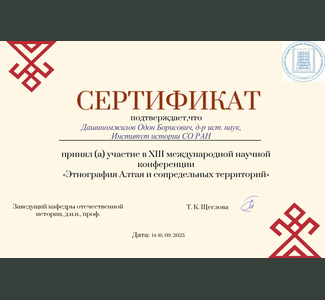 Cотрудник Института истории СО РАН О.Б. Дашинамжилов выступил с докладом на XIII Международной научной конференции «Этнография Алтая и сопредельных территорий», посвященной 80-летию Великой Победы и Году защитника Отечества