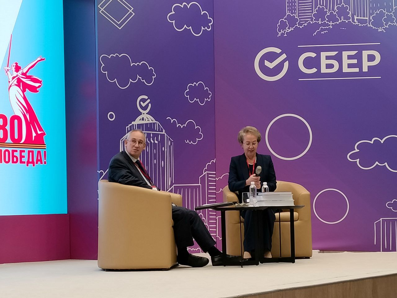 Директор Института истории СО РАН, доктор исторических наук Вадим Маркович Рынков выступил на пленарном заседании с докладом «Сибирские историки о Великой Отечественной войне: проблематика, роль в сохранении исторической памяти и приумножении книжного наследия» и был одним из его модераторов совместно с директором Библиотеки Академии наук (БАН) Ольгой Владимировной Скворцовой (Санкт-Петербург).