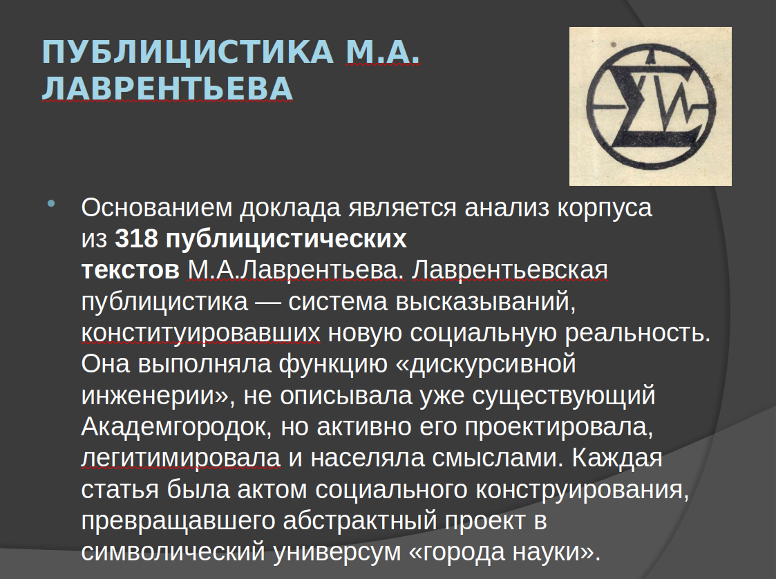 Старший научный сотрудник Института истории СО РАН, кандидат исторических наук Вадим Викторович Журавлев в докладе «М.А. Лаврентьев как социальный мыслитель» показал широкий спектр деятельности ученого, представив М.А. Лаврентьева как социального мыслителя на основе его публикаций в различных изданиях.