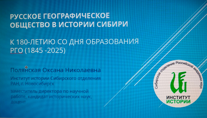 18 декабря состоялась лекция (он-лайн) кандидата исторических наук, заместителя директора по научной работе Института истории СО РАН Оксаны Николаевны Полянской. Тема лекции: «Российское географическое общество в истории Сибири. К 180-летию со дня образования РГО (1845−2025)»
